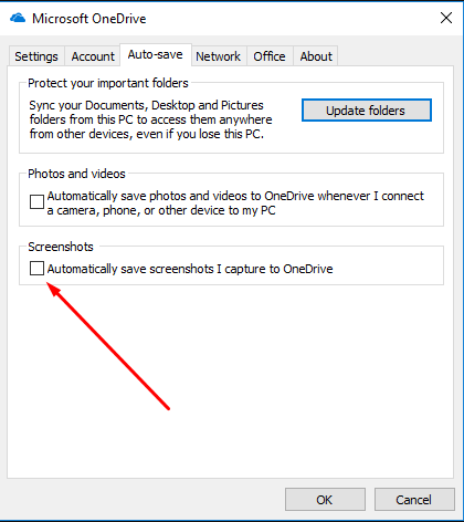 To do so open OneDrive then Settings -> Auto-save and ensure Automatically save screenshots I capture to OneDrive is not checked.